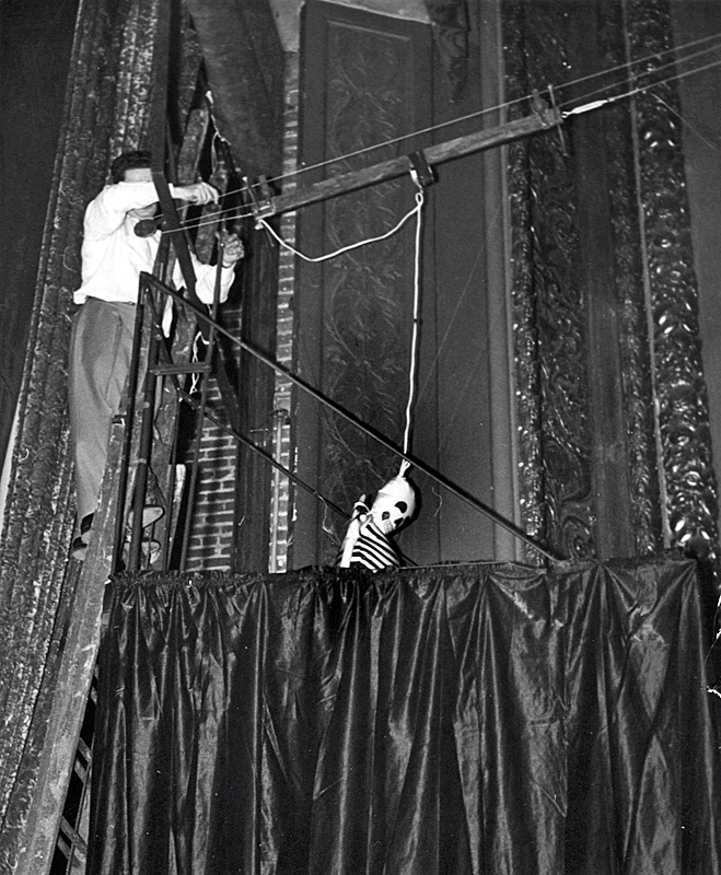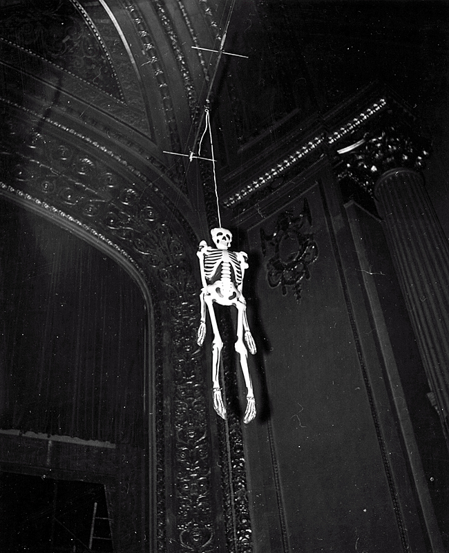 - En algunas salas de estreno se instaló un sistema de cables y poleas para «volar» un esqueleto humano sobre el público en un momento clave de la película. En su autobiografía, el productor y director William Castle llamó al aparato «Emergo«.