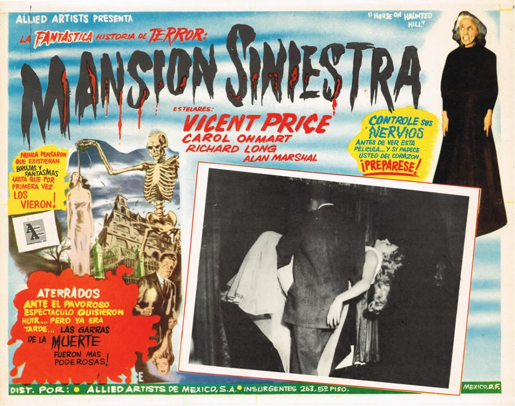 En México: MANSIÓN SINIESTRA y se estrenó en el cine LAS AMÉRICAS del D.F. el 19 de noviembre de 1959, permaneciendo por dos semanas en la cartelera. En España: La mansión de los horrores