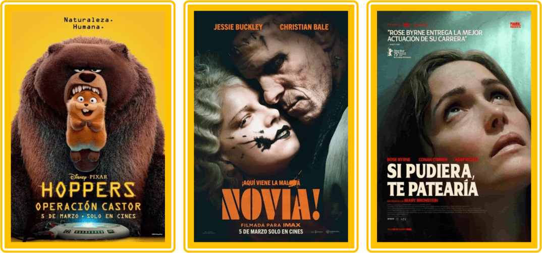 Esta vez la cartelera se siente como un triplete perfecto para públicos muy distintos: una aventura animada con imaginación desbordada (Hoppers), un drama-comedia indie que ha venido cosechando premios fuertes de temporada (Si pudiera, te patearía / If I Had Legs I’d Kick You), y una relectura “monstruosamente” atrevida del mito de Frankenstein, con elenco de lujo (¡La novia! / The Bride!). Aquí van las claves, con premios, nominaciones y curiosidades.