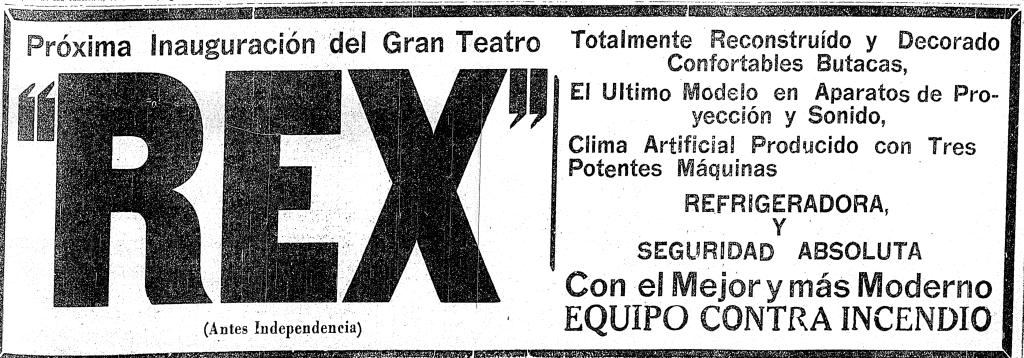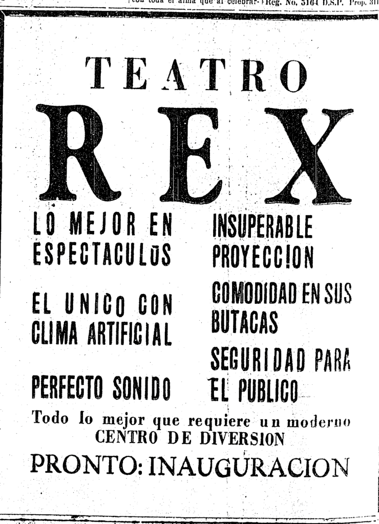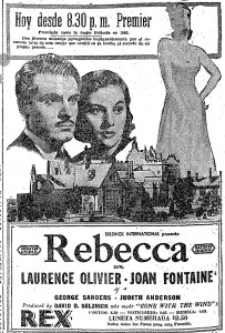 El REX también estrenó otro gran clásico dirigido por el británico Alfred Hitchcock REBECA, ganadora en 1941 del Óscar a Mejor Película. La proyección inicial se dio el miércoles 26 de marzo de 1941 a las 8:30 pm.