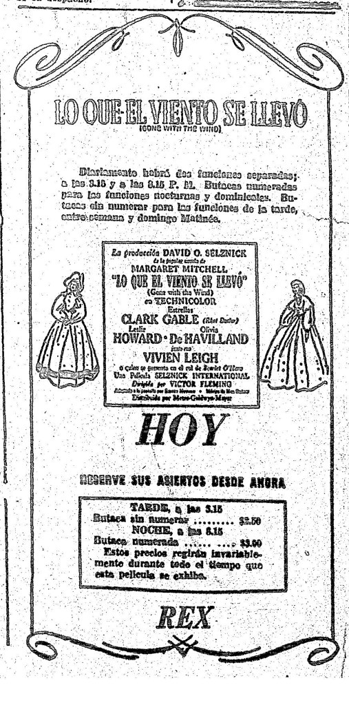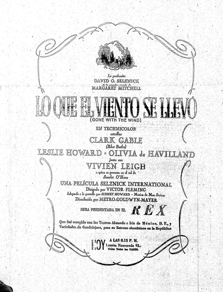 Uno de los acontecimientos memorables en la historia del REX es sin lugar a duda el estreno en Monterrey del clásico de todos los tiempos LO QUE EL VIENTO SE LLEVO cinta ganadora de diez Oscares y entre ellos a Mejor Película, efectuado con una gran Premiere la noche del miércoles 22 de enero de 1941 a las 8:15 pm. Entre los invitados especiales estuvieron: El entonces Gobernador del Estado Gral. Bonifacio Salinas Leal y Sra. El Gral. Miguel Henríquez Guzmán, Jefe de la 7ª Zona Militar e incluso el Cónsul Gral. de los Estados Unidos; Mr. Dale C. McDonough y Sra. Y el Vicecónsul Mr. Herbert W.Carlson y Sra. Así como un buen número de funcionarios estatales y municipales.