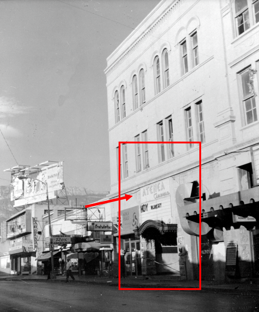 El REX templo cinematográfico del que también fui asiduo y fiel parroquiano estuvo ubicado en la calle Zaragoza en el No. 641 Sur, en la acera Poniente; al lado Norte se construiría en 1946 la continuación de la calle del General Terán hacia el poniente, y recibirá el nombre de “Juan Ignacio Ramón”, y en dónde hoy se ubica el Tribunal Superior de Justicia de Nuevo León.