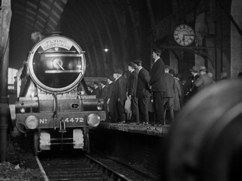 - The Flying Scotsman es una película británica en blanco y negro de 1929, con escenas habladas ambientadas en el tren Flying Scotsman de Londres a Edimburgo, en la que también aparece la famosa locomotora LNER Clase A3 4472 Flying Scotsman. Además de secuencias con diálogos audibles o secuencias habladas, la película cuenta con una banda sonora sincronizada y efectos de sonido junto con intertítulos en inglés. Dirigida por Castleton Knight, la película de suspense es recordada principalmente por ser el primer papel actoral de Ray Milland, así como por sus atrevidas acrobacias realizadas a bordo del tren en movimiento.