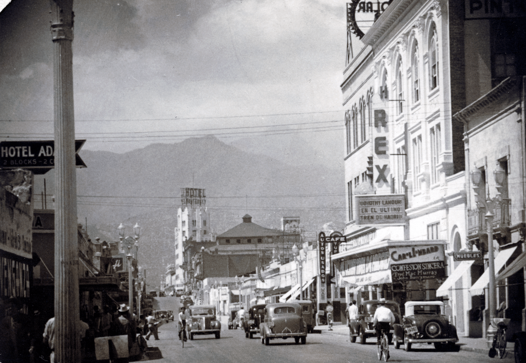 En la imagen podemos apreciar que en ese entonces Zaragoza tenía tráfico en ambos sentidos y en la parte posterior se aprecia la figura inconfundible del Hotel Monterrey (Inaugurado, el sábado 26 de agosto de 1933).