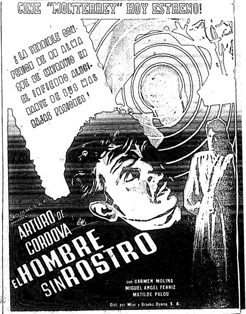 …así se anunciaba el estreno de la popular película mexicana EL HOMBRE SIN ROSTRO el 7 de julio de 1950 justo hoy hace ¡73 años!