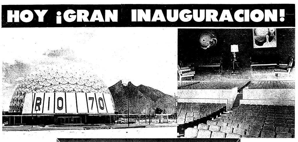 Más posteriores y que más bien corresponden a mi adolescencia están el RÍO 70 Un espectacular domo geodésico en la calle Serafín Peña Sur, 1051, entre Melchor Ocampo y la Ave. Constitución inaugurado en 1969.