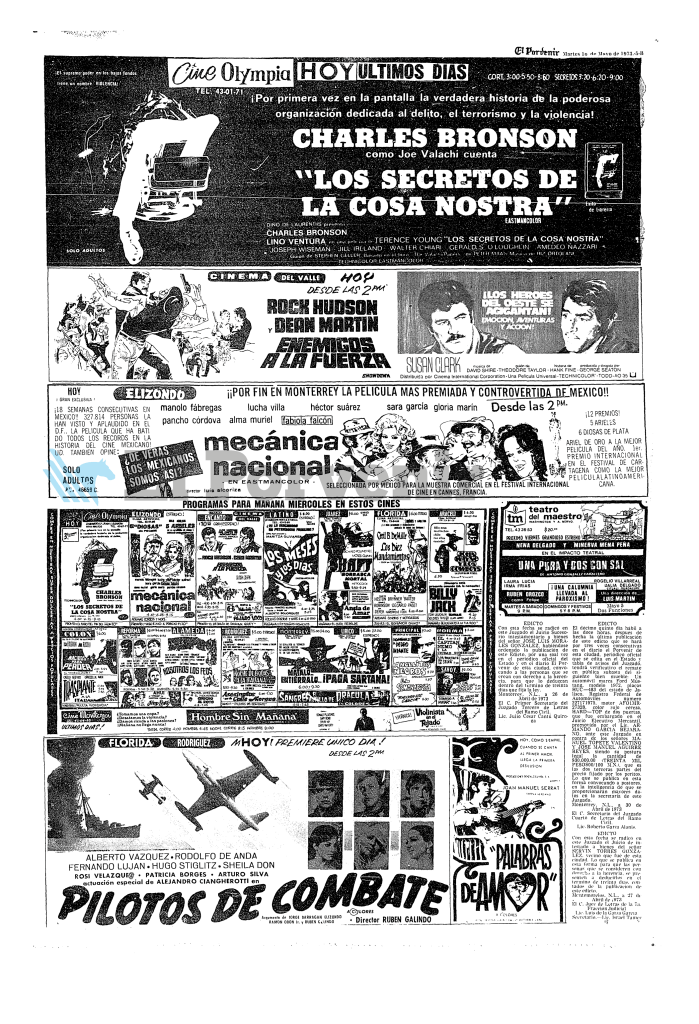 El martes 1 de mayo de 1973 ¡Hace ya 50 años! en Monterrey esto era lo que exhibían los cines de la ciudad…