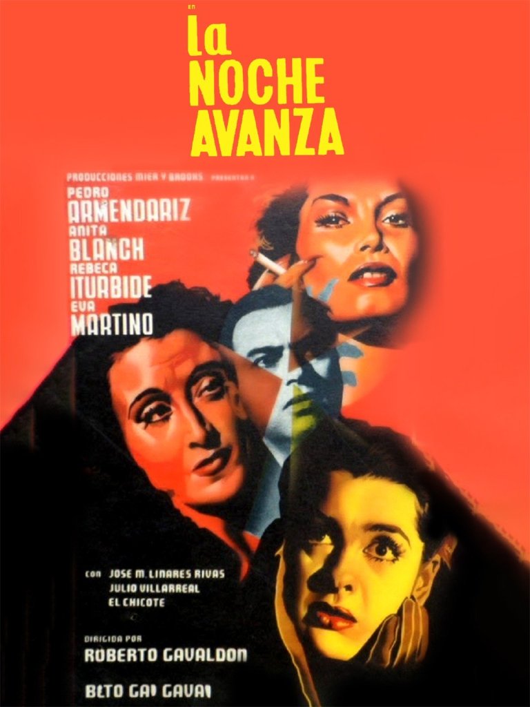 LA NOCHE AVANZA dirigida por Roberto Gavaldón y protagonizada por: Pedro Armendáriz, Anita Blanch, Rebeca Iturbide, Eva Martino, José María Linares-Rivas, Julio Villarreal, Armando Soto La Marina,
