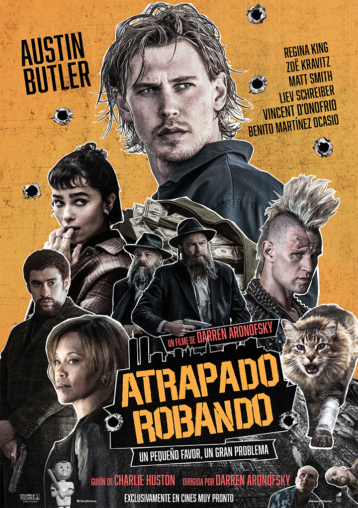 Del Director, productor y escritor neoyorkino (De Brooklyn para ser más preciso) Darren Aronofsky y con un reparto tan abultado como atractivo: Austin Butler, Regina King, Zoë Kravitz, Matt Smith, Liev Schreiber, Vincent D’Onofrio, Griffin Dunne, Benito A Martínez Ocasio y Carol Kane, se estrena este fin de semana de manera simultánea con casi todo el mundo: ATRAPADO ROBANDO (Caught Stealing)… Aquí Hank Thompson (Austin Butler) era un fenómeno del béisbol en la preparatoria que ya no puede jugar, pero en todo lo demás le va bien.