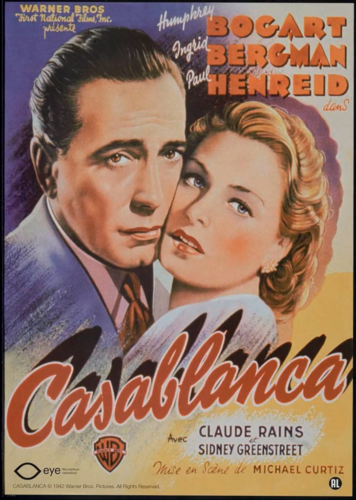 Humphrey Bogart e Ingrid Bergman se reunieron para que el rodaje no arruinara sus carreras. La intención fue de propaganda bélica, pero el tiempo consagró a la inolvidable historia de amor