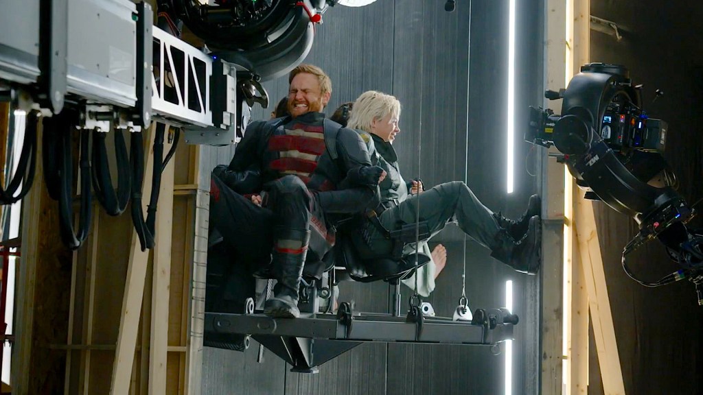 Florence Pugh desafió las alturas: La actriz insistió en realizar personalmente una escena en la que su personaje, Yelena Belova, salta desde el rascacielos Merdeka 118 en Kuala Lumpur, el segundo más alto del mundo. Aunque el salto real fue de solo dos metros con arnés, lo repitió nueve veces en dos días. Inicialmente, el equipo de seguridad de Disney rechazó su solicitud, pero tras su persistencia, incluyendo una apelación directa a Kevin Feige, se le permitió realizar la acrobacia.